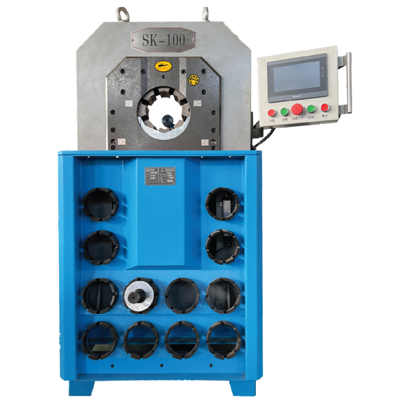 我厂研制生产的SK-100型锁管机适用于工农业和工程机械液压传动用高压胶管、纤维管、塑料管总成的扣压加工。具有扣压范围广、精度高(采用PLC控制)、自动化程度高、易操作、好维修等优点。