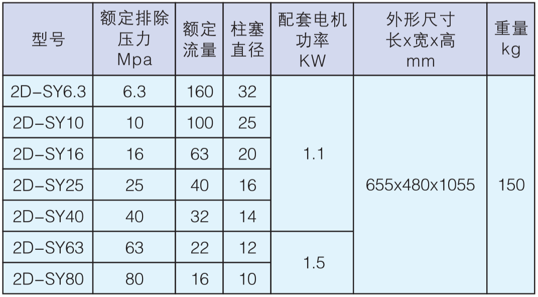 2D-SY50/100、2D-SY40/130型电动试压泵,传动部分采用卧式摆线针轮减速机,然后经主轴偏心滑块机构,驱使十字头在水平滑道内往复移动,带动柱塞在液缸内的往复运动,以排出高压液体。整个泵体部分置于水箱上方,固定在与水箱盖相齐的机座上,并对置安装,以便于拆装液缸部分易损件和其它维护工作,从而使整体结构紧凑,外观造型大方。