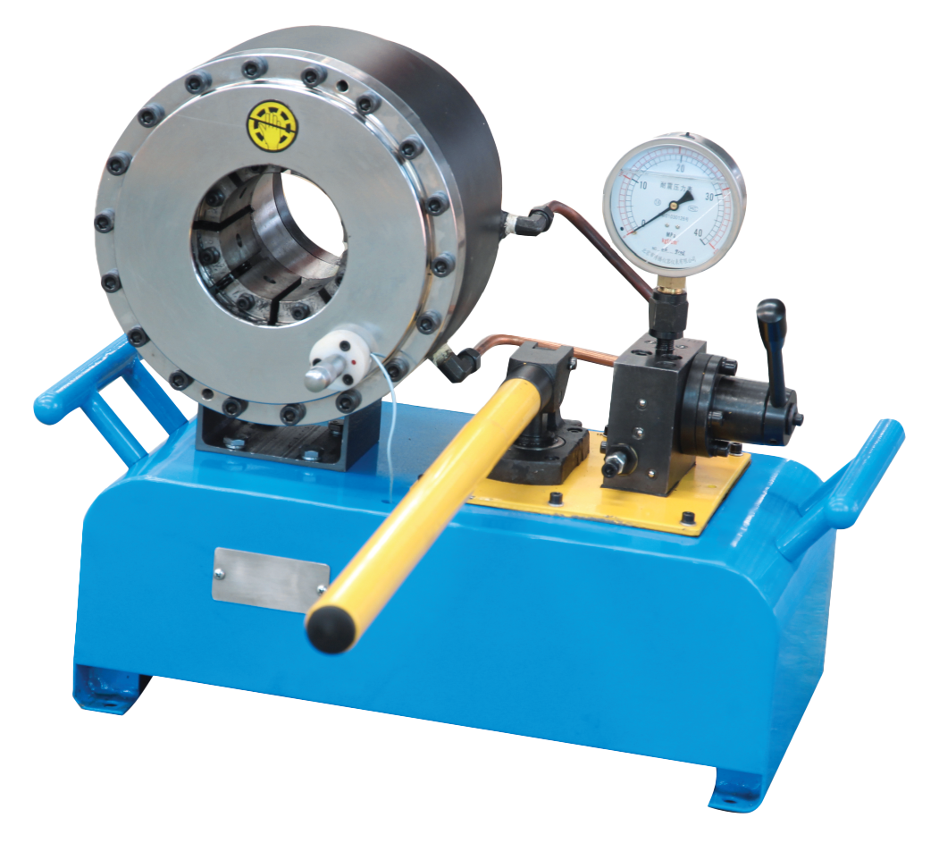JKS-200型锁管机是一种轻型便携式机型。它结构简单,操作、搬运方便,采用超高压手动泵为动力源,更适合野外作业和无动力电生产胶管总成用。